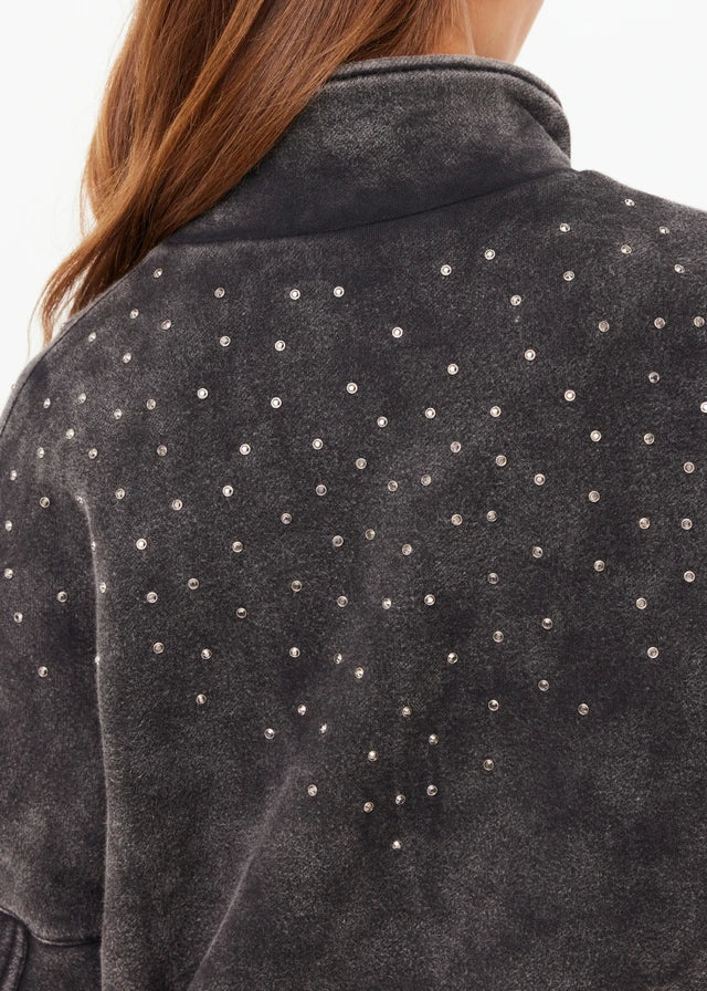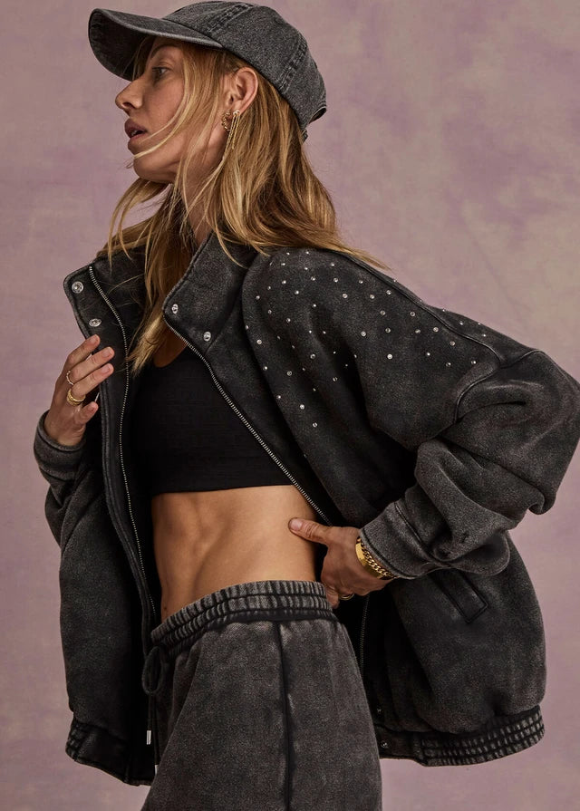 Merging the rugged attitude of a moto jacket with a touch of unexpected glamour, this piece is the ultimate statement in "tough-meets-luxe." The heavy-weight organic fleece provides a structured silhouette, while the hand-placed sparkle adds a sophisticated edge to your street-style rotation.