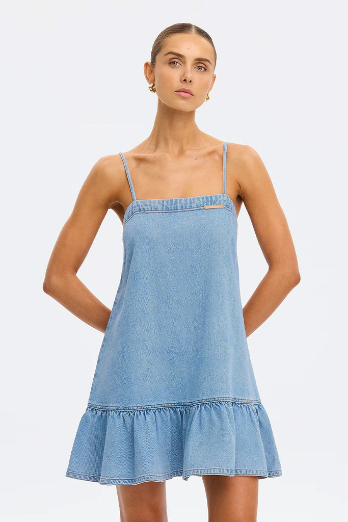 KIVARI - EMILIE DENIM STRAPPY MINI DRESS - COAST BLUE