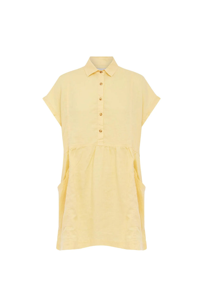 ROWIE - GINA LINEN MINI DRESS - LEMON