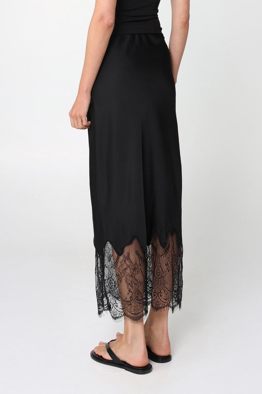 The Luella Maxi Skirt by Madison The Label is the ultimate combination of comfort and style. Featuring a Internal elasticated waist and lace time on hem, this satin maxi skirt is the perfect elevated basic.