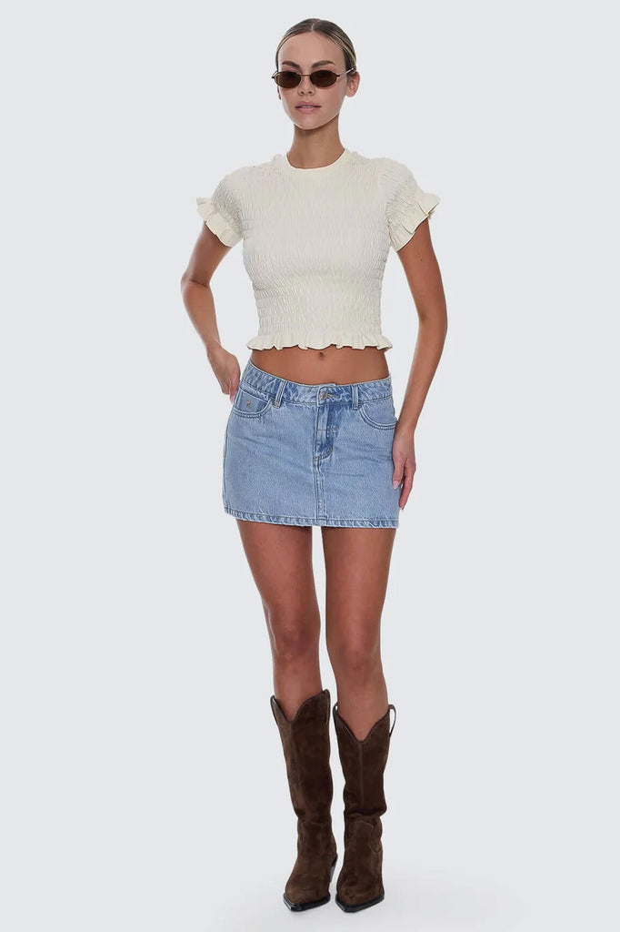 Your warm-weather style ages like a fine wine with our Sophie Skirt in Ageless Blue. Crafted from heavy-duty cotton denim, this micro mini skirt offers a flattering fit and classic light blue wash that pairs well with anything. With functional front and back pockets, a zip-and-button closure, and belt loops, it’s as practical as it is stylish.